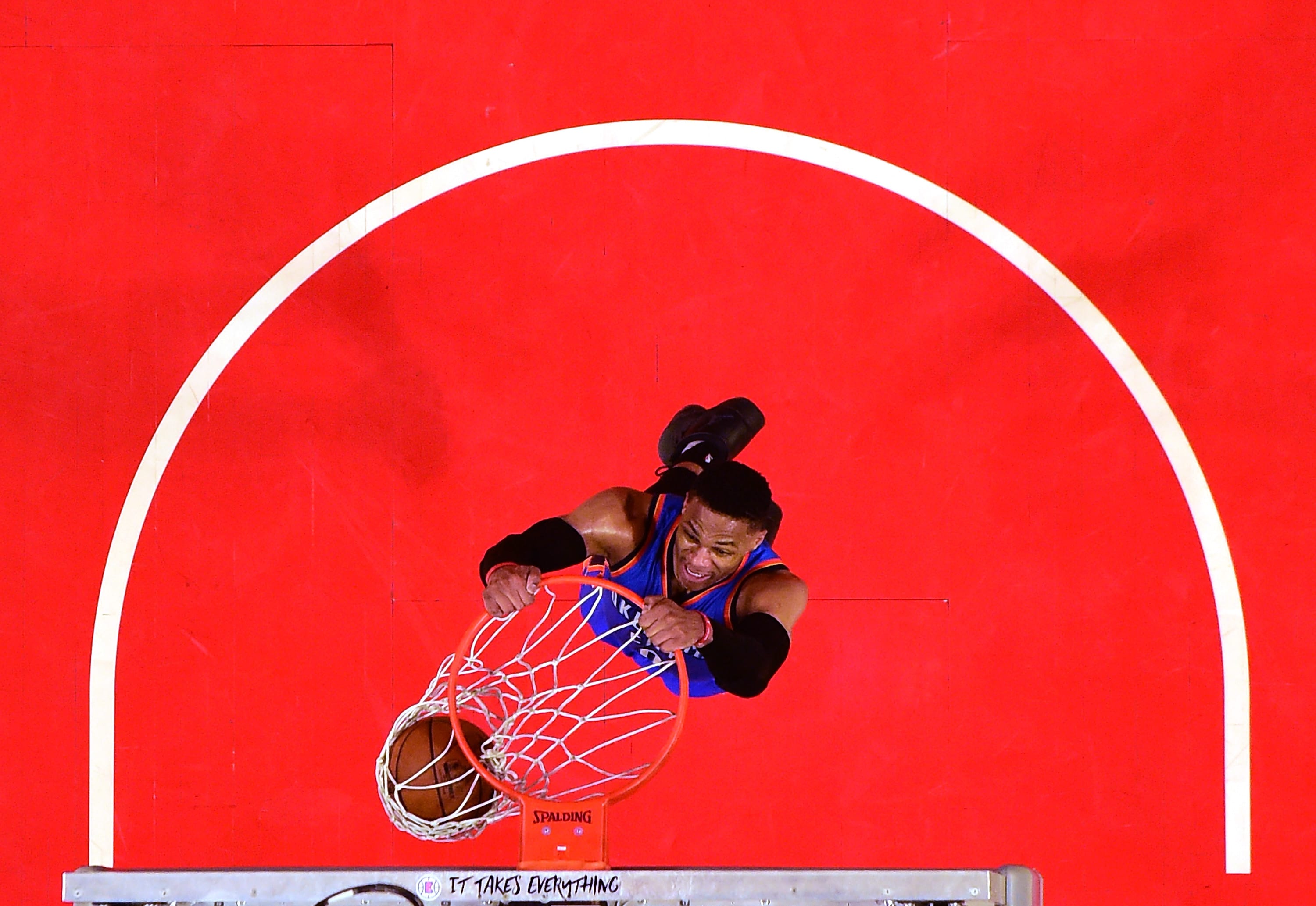 在这个特殊时刻,在这个特殊的赛季,即将到来的特殊的季后赛,甚至是特殊的一年里,我们可以说,也许,肯定,威少比任何人都要更出色。他的表现在某些特定的夜晚就好像是篮球中唯一值得大家关注的东西。