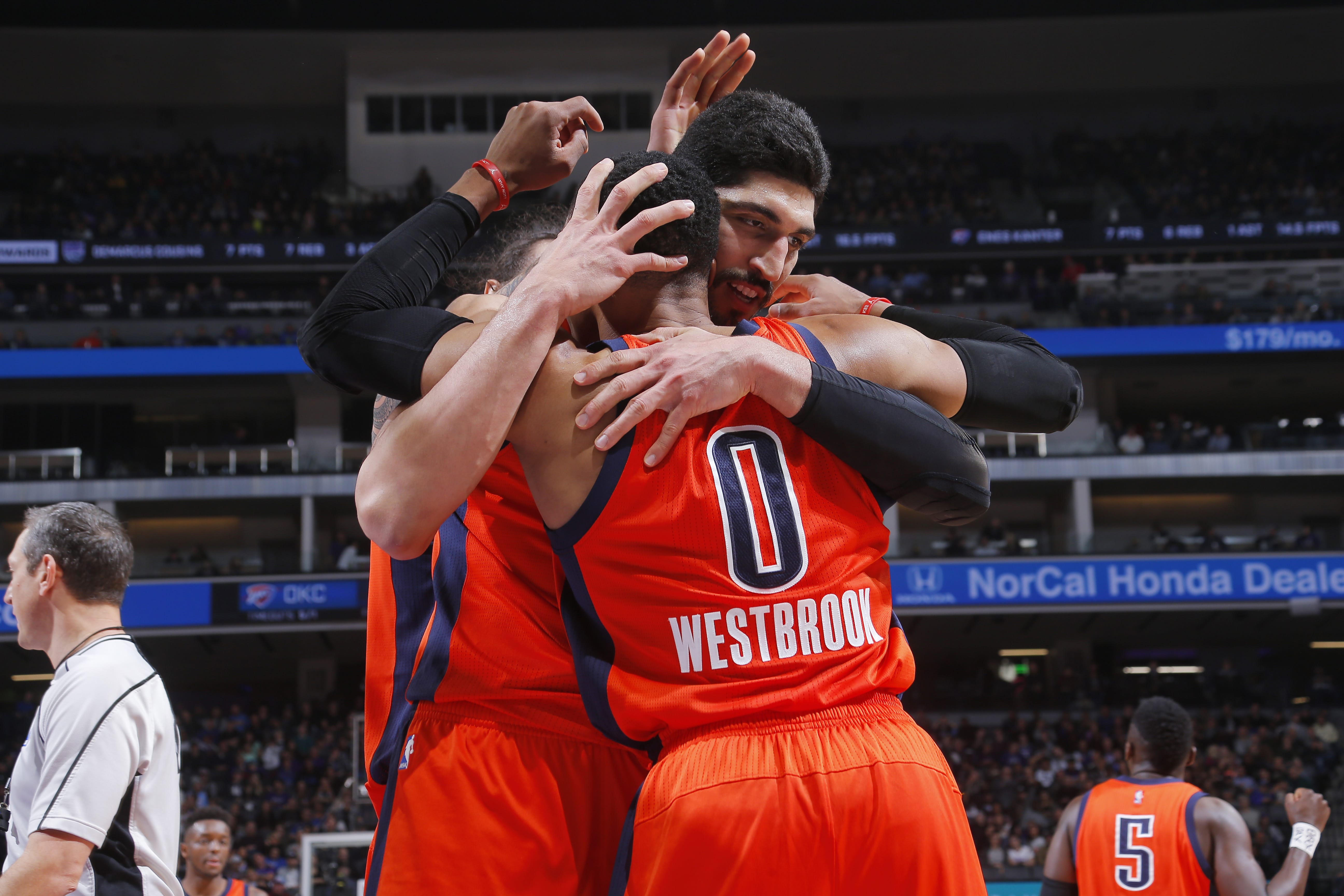 Then he says the same to the media in the postgame. Things happen. And, I have to tell you … it really just sets the tone for the team. Russ is our leader, and guys follow his example. And I think that’s what he was doing there. He could sense that I already felt bad enough about this injury … bad enough for the whole team combined. And that I would take the moment back in a heartbeat if I could. There was no need to yell at me. On the inside, I am already yelling at myself. And so I think that Russ was just trying to let our guys know, you know, very clearly: Enes is sorry, and he’s an important part of our team. So let’s support him, and get him back as soon as possible — and that’s it. End of discussion.